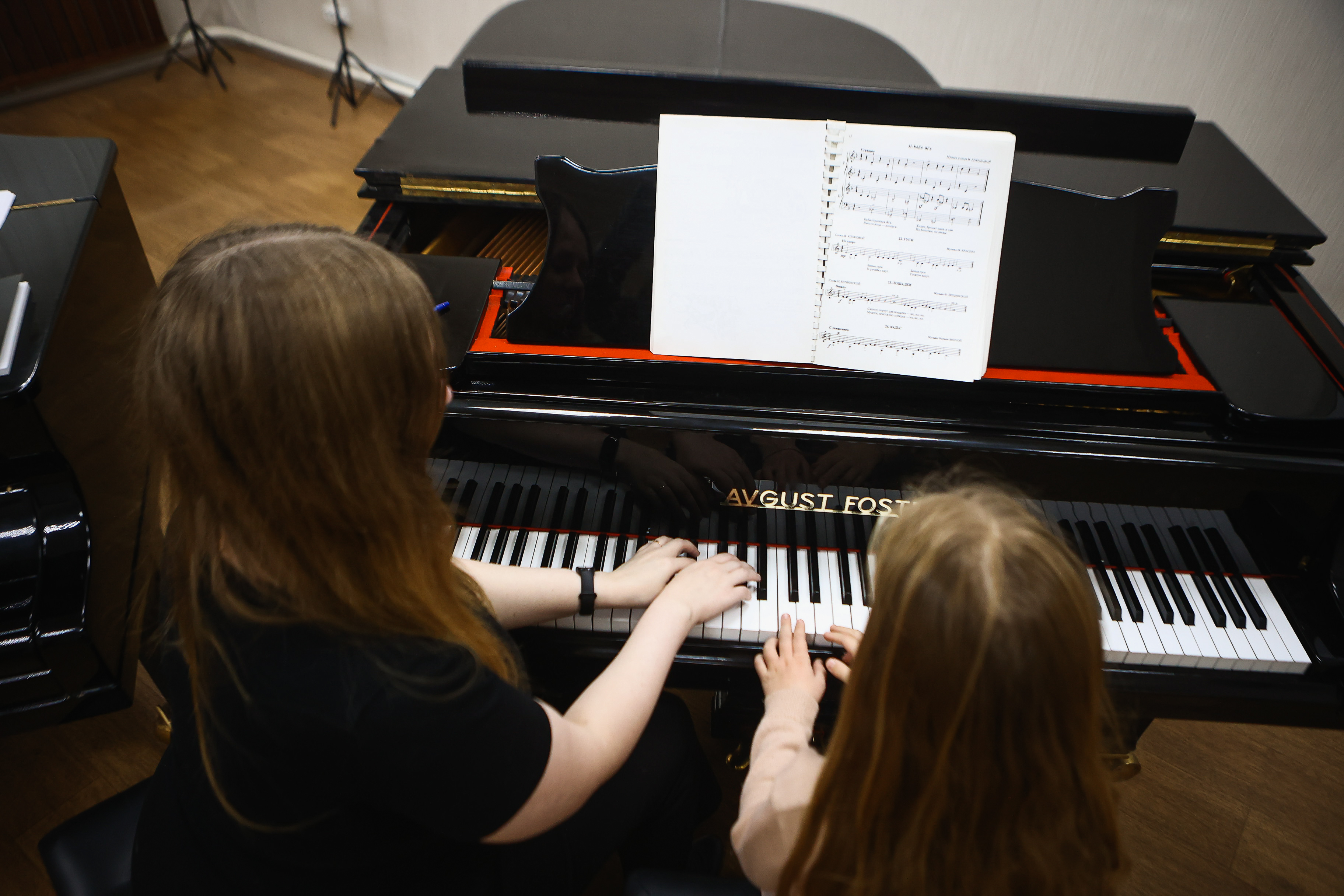 По его словам, дети с самого начала обучения имеют возможность прикоснуться к настоящим профессиональным инструментам, имеющим богатую историю. На роялях академии не предусмотрены замки. На всех без исключения можно заниматься.