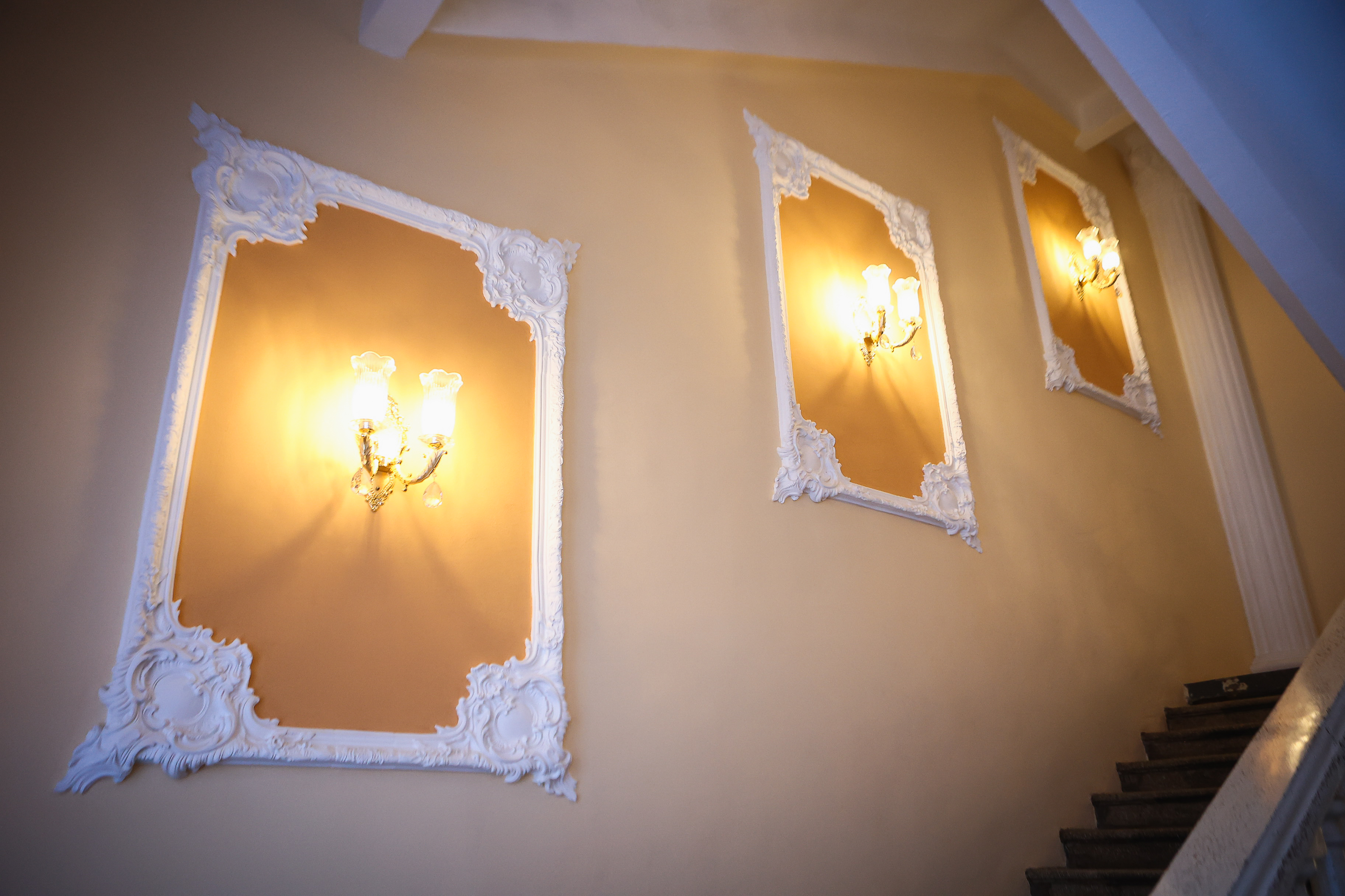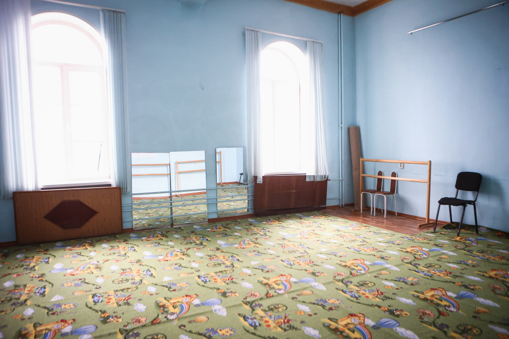 Художественная студия находится в центральном — полукруглом — блоке здания. Здесь пять окон и много света. В этом помещении сохранились исторические элементы: декор, паркет и двери.