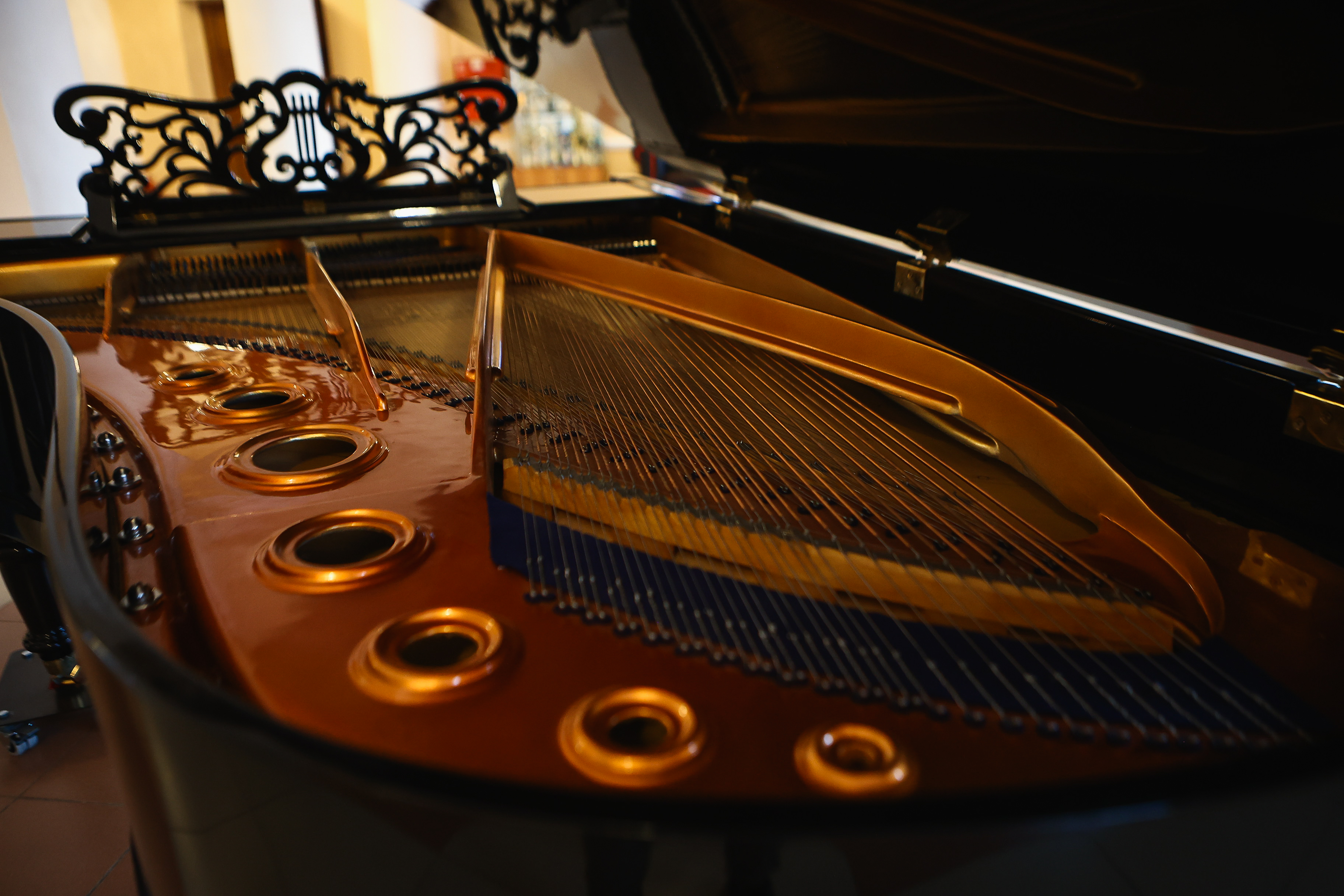 В залах, холлах и кабинетах установлены концертные рояли. «Инструменты такого уровня в нашем городе по пальцам одной руки можно пересчитать», — отмечает Владимир Август.